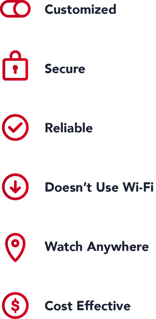 As an added bonus, our system lets you take the magic with you so you can continue watching where you left off even after you arrive at your destination. You never have to worry about overage fees from accidental streaming. Not being reliant on Wi-Fi means you can watch your Video Valet content in the car, on the beach or in your hotel room on the other side of the world.